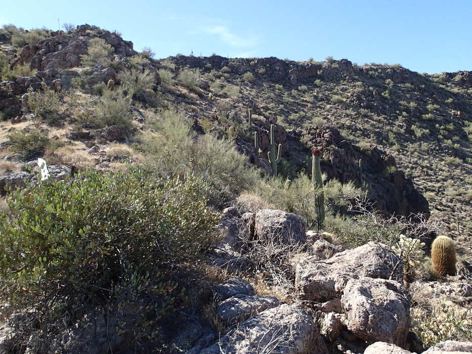 Climbing toward Peak 2857, which is the lower of the two 'peaks' on El Recortado West, the other at an elevation of 2900 feet.
