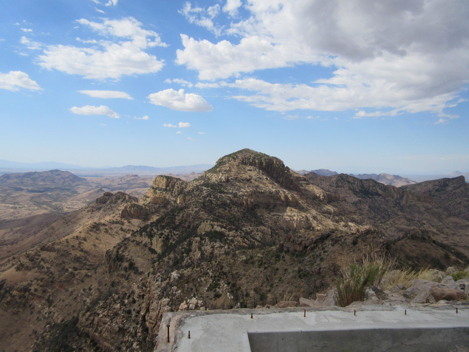 Standing on the new foundation for the lookout. Atascosa Peak in the middle