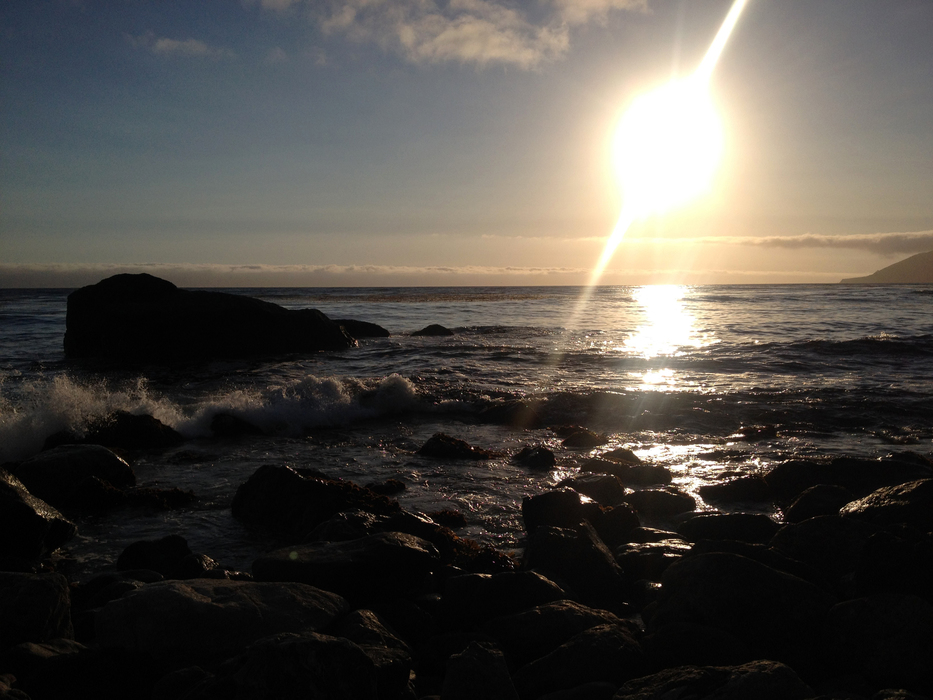 Sitting on a choice rock at Mill Creek Picnic Area taking in the surf and setting sun...