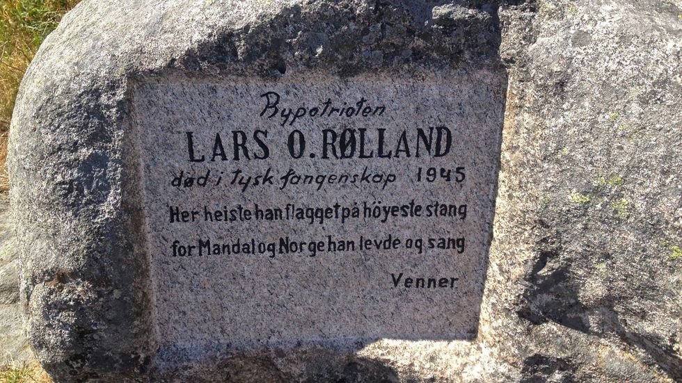 Town patriot Lars O. Rølland died in German captivity 1945. Here he raised the flag on the highest pole for Mandal and Norway he lived and sang. (it rhymes in Norwegian).
