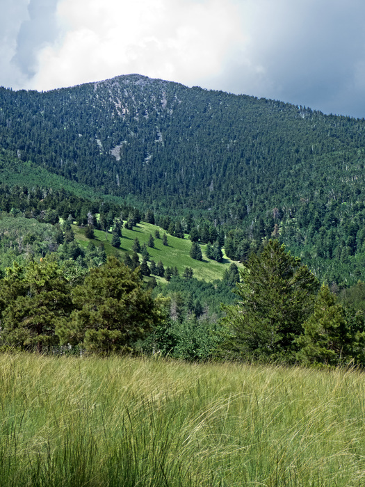 just so lovely with the tall grass, the green grass of the slope and the green of the fir trees.