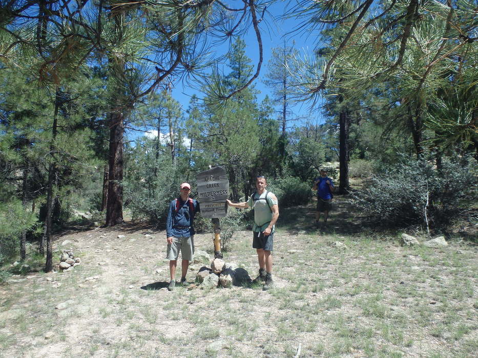 Kyle refused to come out of the shade for the group photo in front of wilderness sign, and I have been told emphatically that this should be my last hike for this shirt