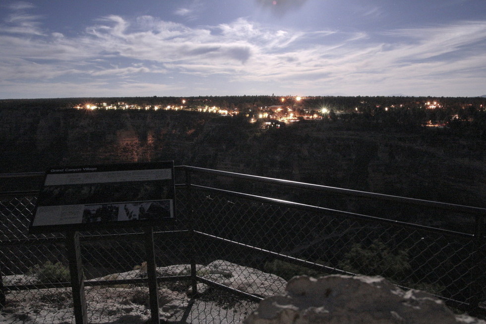 SE View - Grand Canyon Village, 10:30pm, full moon, from Trailview Point