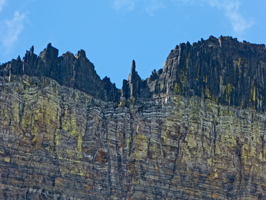 Besides the Glacier Hoodoos, you can get a good sense of the layering especially the Diorite Sill layer. It is everywhere about 100 feet thick, and thus can be used as a very accurate scale for determining the height of mountains on which it is discernible. See the chart on this page about the layers: http://www.nps.gov/history/history/onli ... 3/sec4.htm. Reminds me a bit of the Grand Canyon chart...