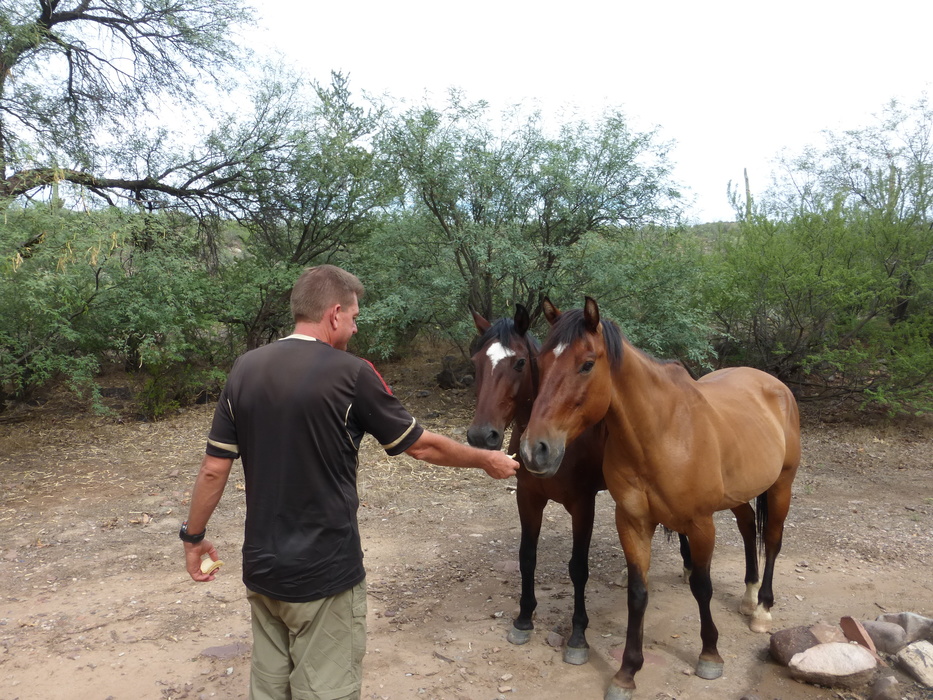 when on the radio comes the song "A horse with no Name", we round a corner and there they were.