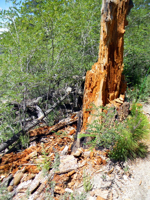 After seeing several tree stumps looking like this, we realized it was bears pawing at the trees hunting for grub. Didn't see any though....