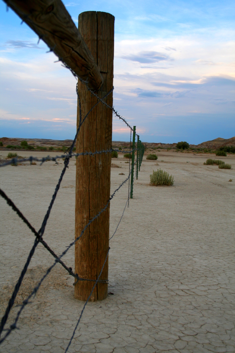 Wilderness fence demarcates the wilderness boundary. The salt flats served as vehicle parking.