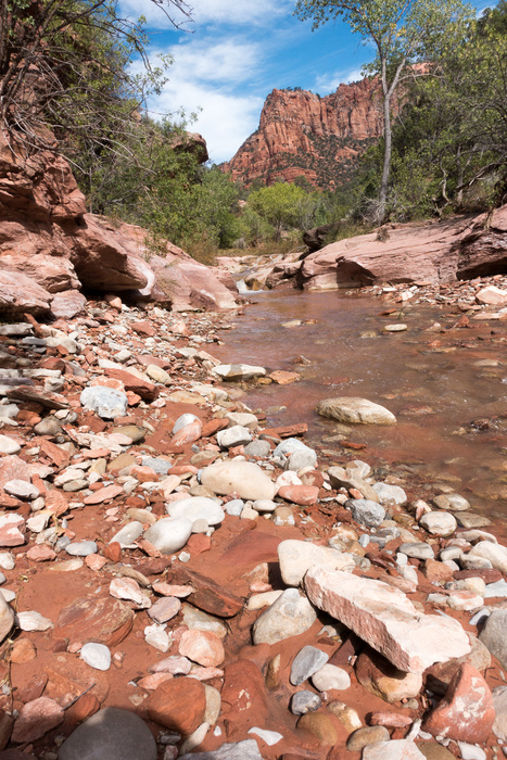 Water flow in La Verkin creek wasn't heavy. It was ample for all of our needs and flowed quickly with cold water delivered from higher ground. Evidence all around indicated that the creek had flowed much higher in the very recent past.