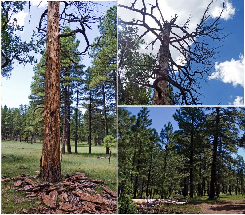 lightning strike? bark blew off the tree as did the top that ended up on the other side of the road.