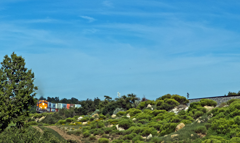 Here she comes. Great to catch the train on a curve.