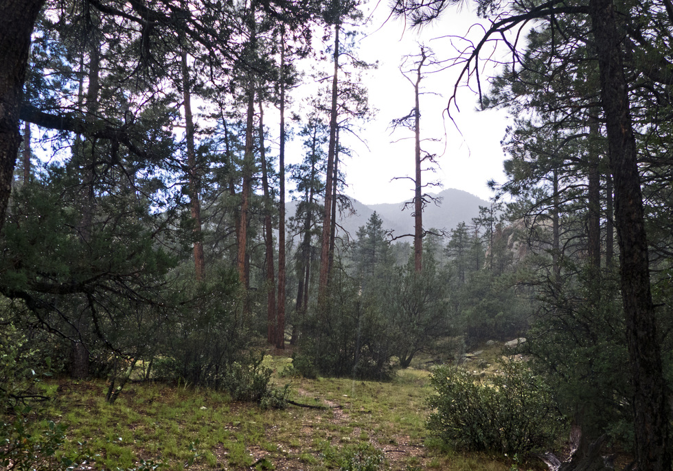 NOW the rain was getting very heavy but I had my chrome dome so I could still shoot pictures and movies from time to time. Based on Lee's pictures, they were now at the 95B turn that I would miss. My pictures are coded to the route timing of John9L. Ironically, at this almost exact time (add 7 minutes to mine below), the others had reached the right turn onto 95B http://hikearizona.com/photo=442629 & http://hikearizona.com/photo=442630