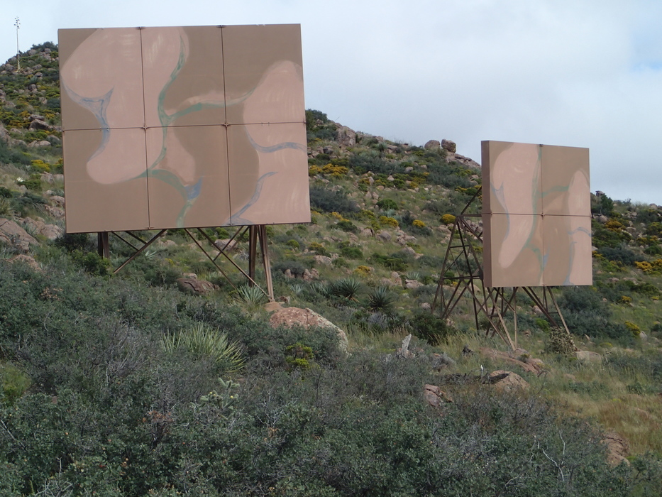 These two microwave reflectors are facing southeast. From the US 60 they blend in with the boulders on the slope.