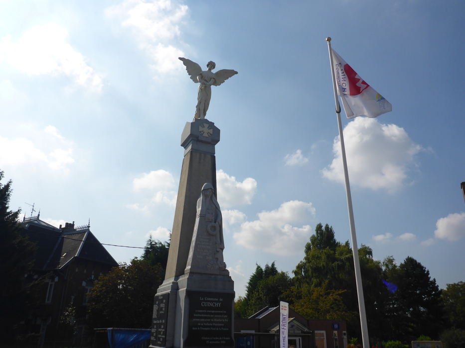 Train station memorial to Cuinchy's dead, military and civilian, mostly in World War I, but also World War II and Indochina. I don't know what Cuinchy's population was 100 years ago, but it is currently about 1,700. The town lost seven civilians and 52 (!) soldiers in the Great War -- three dying of wounds after the war ended, one as late as 1921.