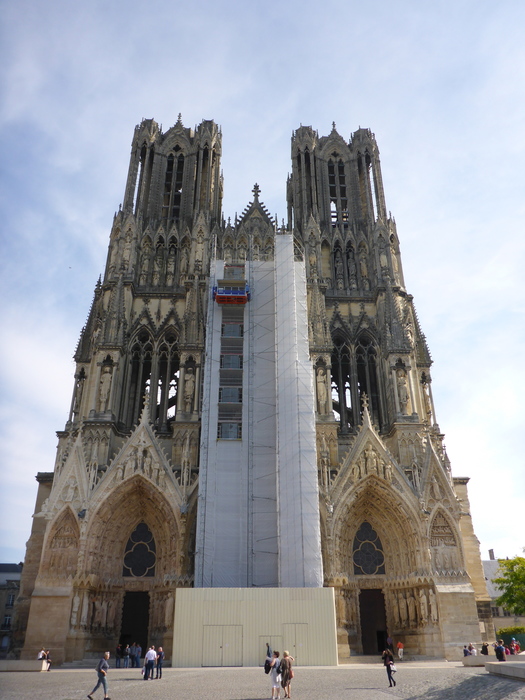 Cathédrale Notre-Dame de Reims (Our Lady of Reims). A church has stood on this site since 401 A.D. The "modern" cathedral dates to the early 13th Century. 25 French kings have been crowned here, including Charles VII, courtesy of Jeanne d'Arc.