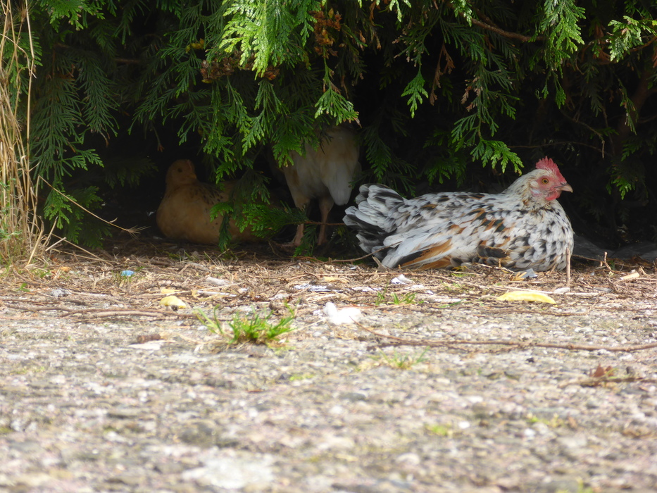 Free-range chickens at the Belgian motorway gas station / rest stop.