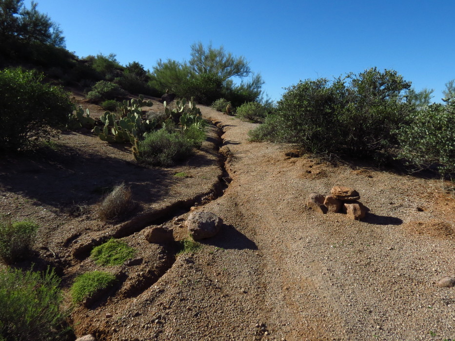 The "new" portion of the trail was well marked by the small channels eroded by the recent storms.
