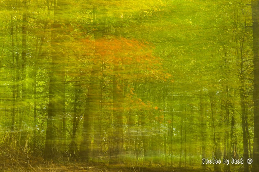 Just kidding. This quarter second exposure had the camera sitting on the tripod and was panned from left to right as I pressed the shutter release button for a smear of autumn color
