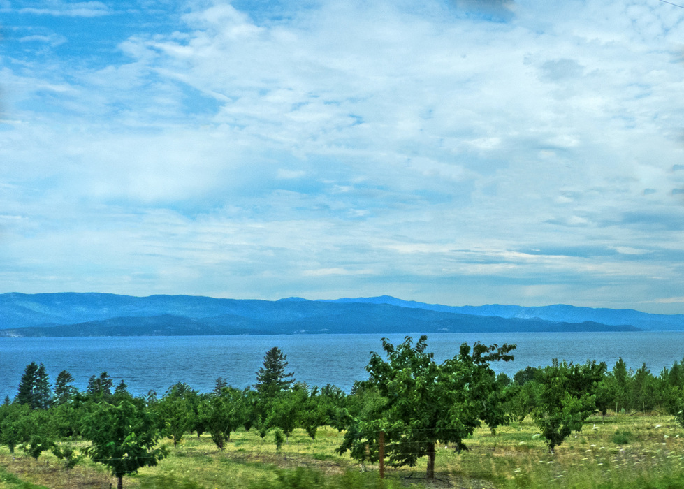 More incredible views over the cherry trees across to the Salish Mountains in the background.