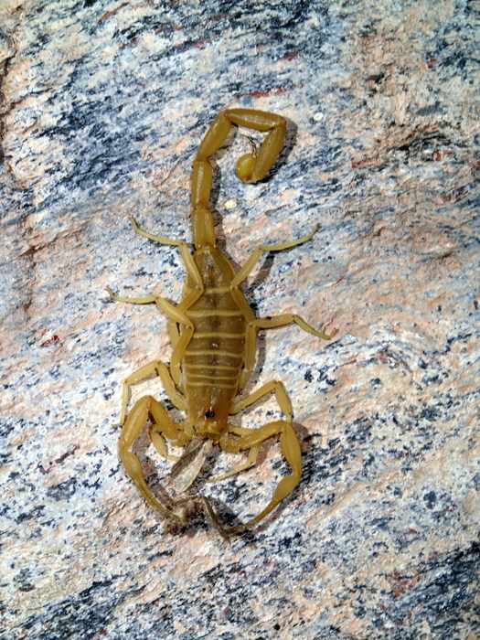 Scorpion with a moth in its pincers in Trinity Canyon- the place was swarming with them, no blacklight needed!