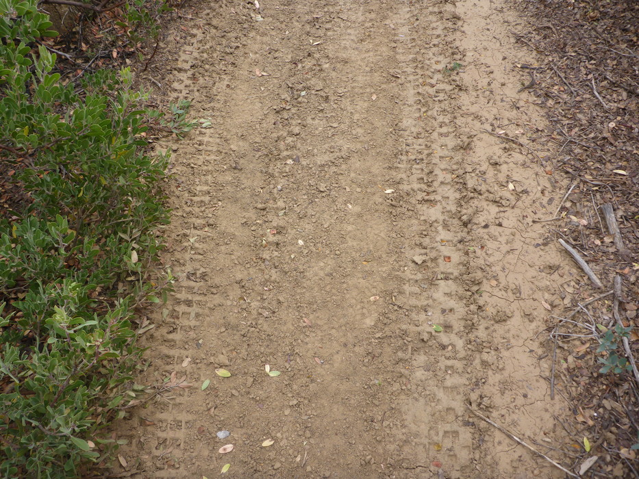 Evidence of motorcycle use. The trail is too narrow for ATVs.