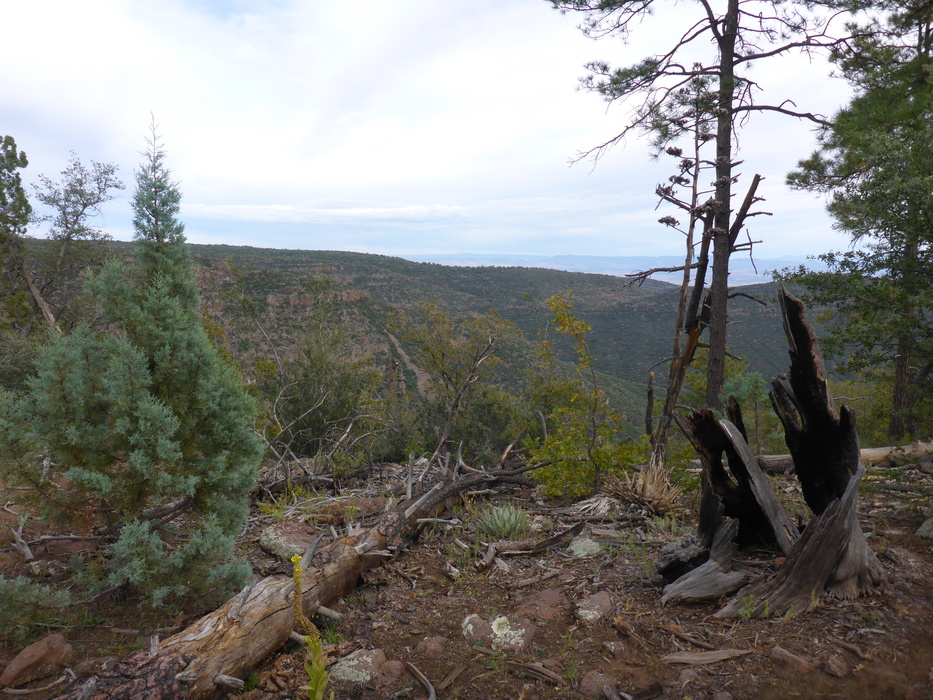 View across Wolf Creek and Pipeline Canyon to the far east end of Big Bug Mesa. Still no sign of Trail #289.