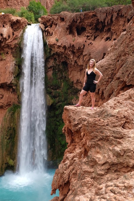 she wanted to do some yoga headstands, I advised against... note a Ranger atop the falls watching the crowds below