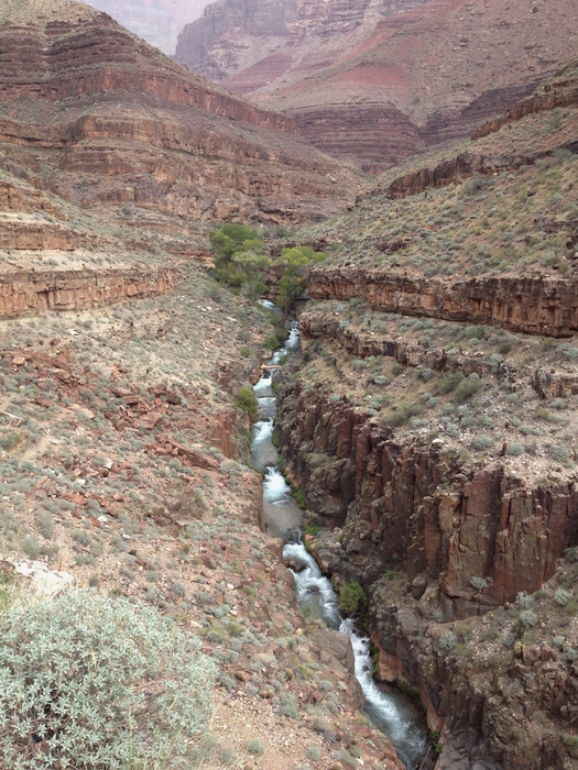 Tapeats Creek from the hiking trail. Our route wraps around the left side and connects back to the creek up canyon