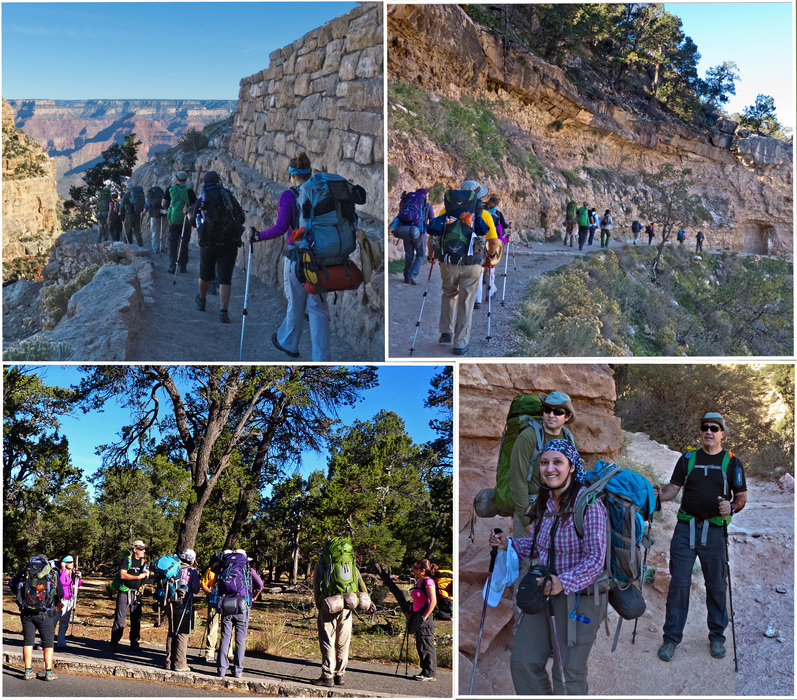 LL: gathering for the walk over to the TH. Upper photos: and they're off from the top to the first tunnel. LR is part of the CBC: Deepa (loved the way she said dam mit), George and Ed in black. Ed has a Philly accent; he met others on the trip that had that same problem, LOL!