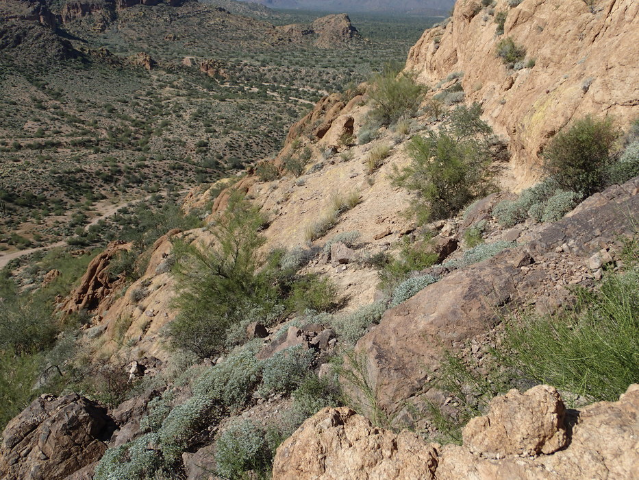 The bighorn sheep stopped in the center, stared at me for 15 seconds, then descended all the way to the left.