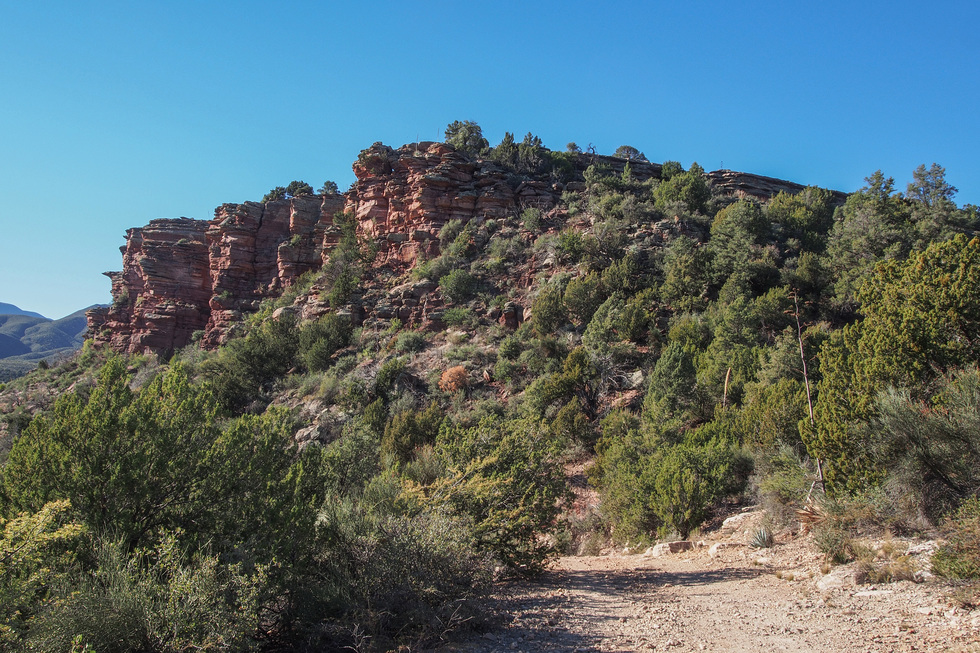 Approaching the location for starting up the ridge to the cliff top from the LF Ranch road