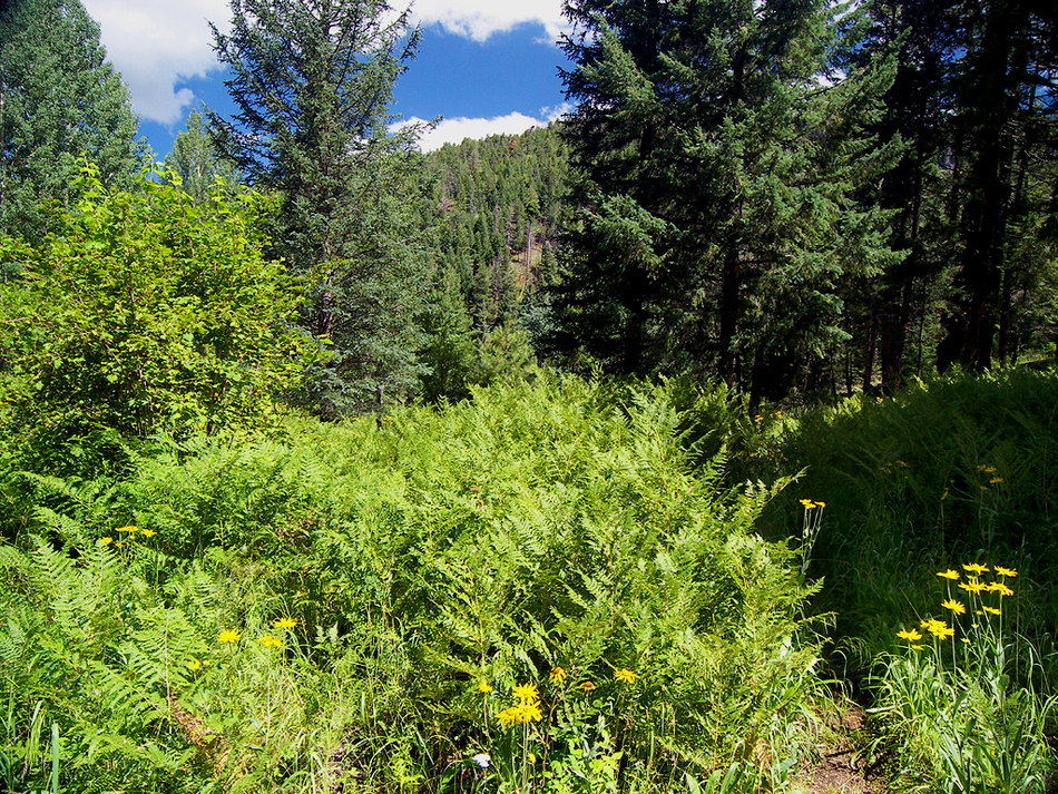 tall bracken ferns along the Moonshine Creek trail
