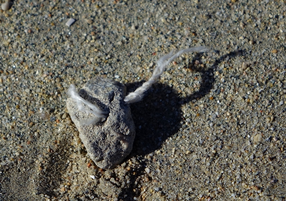This was near the pottery pieces-- I assume a modern person sticking a needle with thread thru a hole in the rock