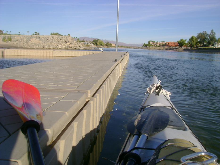 I rested my arm on this dock while trying to paddle upstream. One time I got as far as that big house on the right, or maybe a little further, but it was hard. There is a narrow spot up there with very strong current. With the river so low there is no room for it to form eddies which I could use to travel upstream. Other parts of the river are easier to paddle up, but not this section.