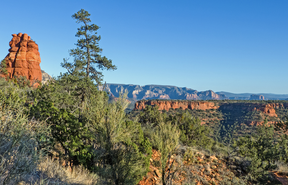 on the second bench looking ESE with Doe Mountain on the right and you can see Courthouse Butte just above it in the background.