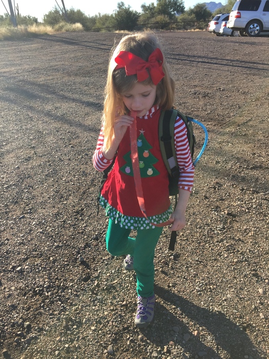 Fruit roll-up. Notice how her waterpack works in her Grand Canyon backpack