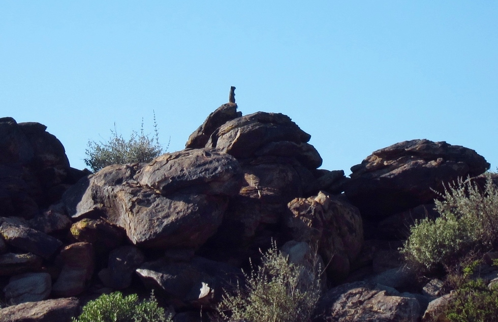 Sorry for inadequate zoom. We stared at that thing on top for a few minutes and I was sure it didn't move and was only a rock or stick, Looking at a few pictures at home I see it did rotate...don't think they have rock climbing prairie dogs in S.Mtn, but they got something.