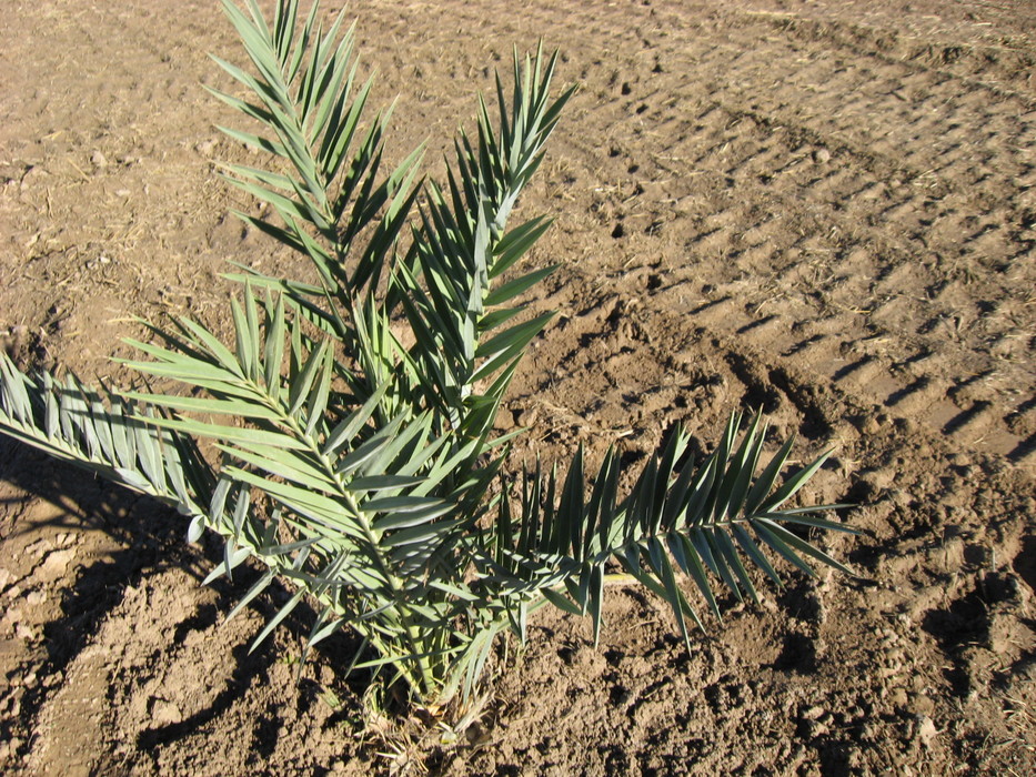 Probably planted last winter or spring, a young Medjol Date grows in fertile alluvium of the Colorado River Delta. These are all clones, literally, every single Medjol is a pup from the orignal Medjol Date, much like all apple varieties are grafts of the first of that variety, date palms are all cloned by root sprouting, or pups, that the date palms grow when vigorous and healthy.