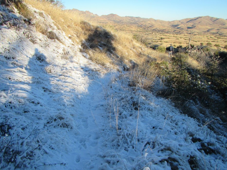 on the trail a few inches of snow on every north facing slope
