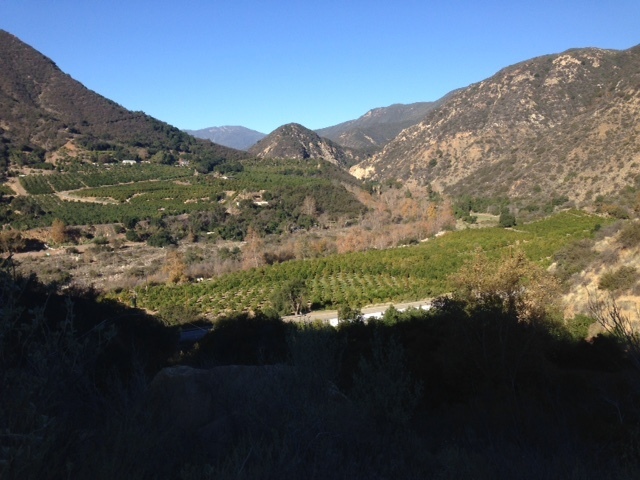 After just a few switchbacks, the trail provides a nice view of some surrounding orchards in the Ojai Valley.