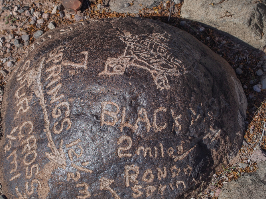 Trail marker where the trail to Black Mesa branches off from the trail to Rondo Spring