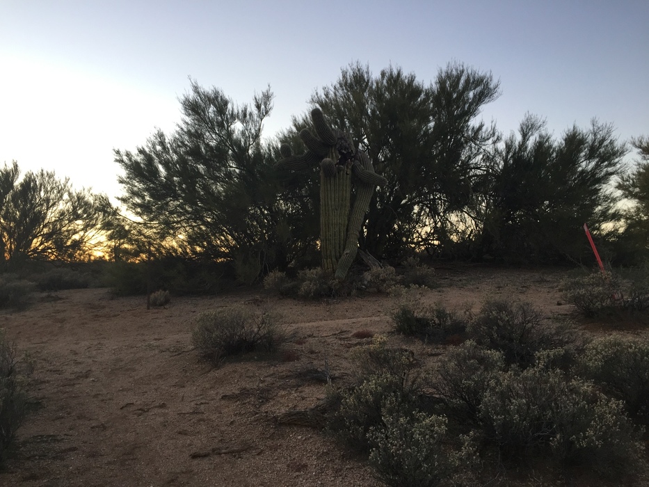 We had to turn back here due to sunset. To the right is the entrance to Tonto National Forest just few feet. You can go straight and winds down to Dove Valley - and Barb's trail. But there are no signs out here so didn't want to risk a wrong turn late in the afternoon with kids