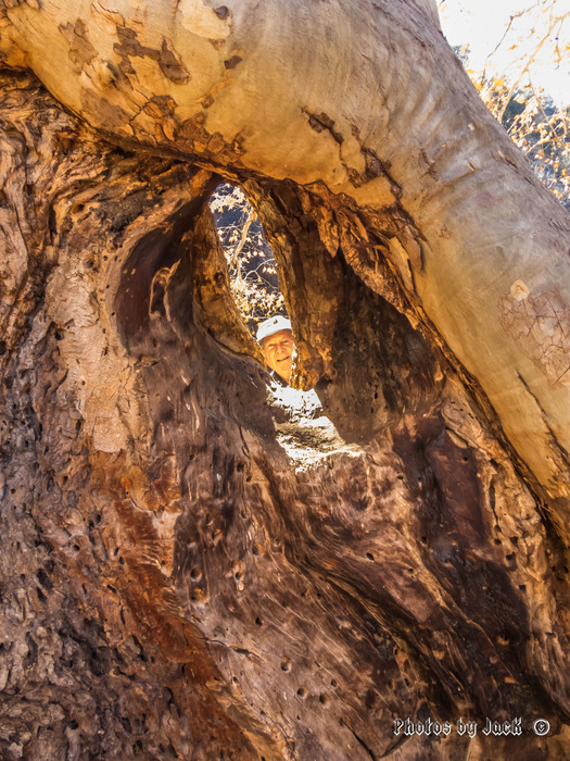 One of the Sycamore trees had a hole completely through it.... with Randy looking from the other side./