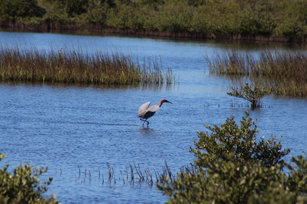 Reddish egret are the most active of all egrets. It's doing its "drunken sailor" dance.
