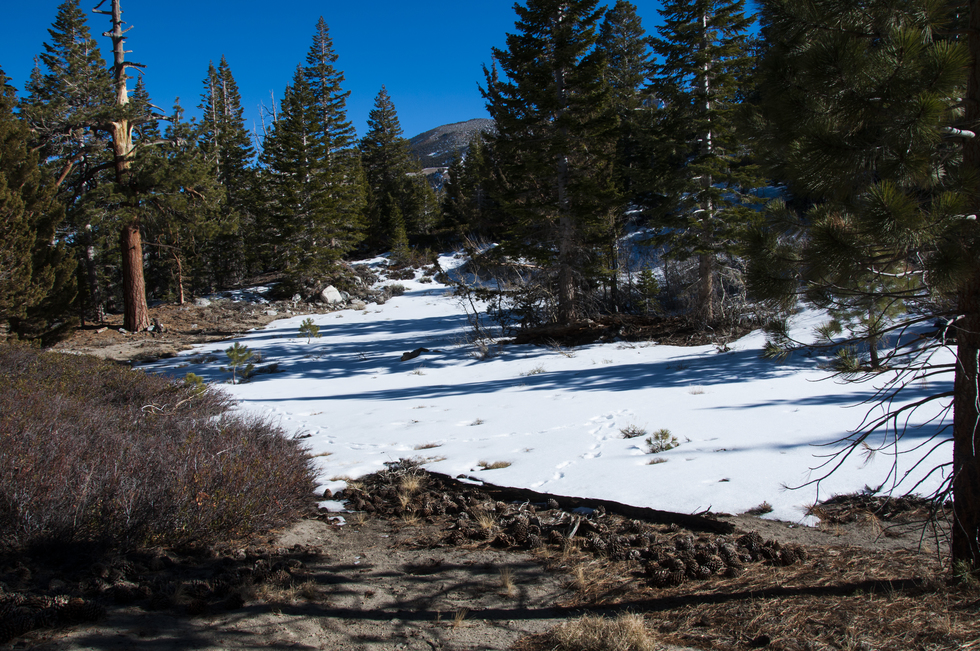 Turnaround point. The snow, while not abundant was plenty deep enough to tire me out and I lost the trail over a half mile back. I had a track log that showed that I never strayed far from the trail, but seeing it on the GPS is not the same as seeing it on the ground.