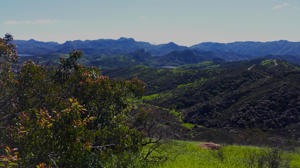 Lake Sherwood to the right and Las Virgenes Reservoir to the left.