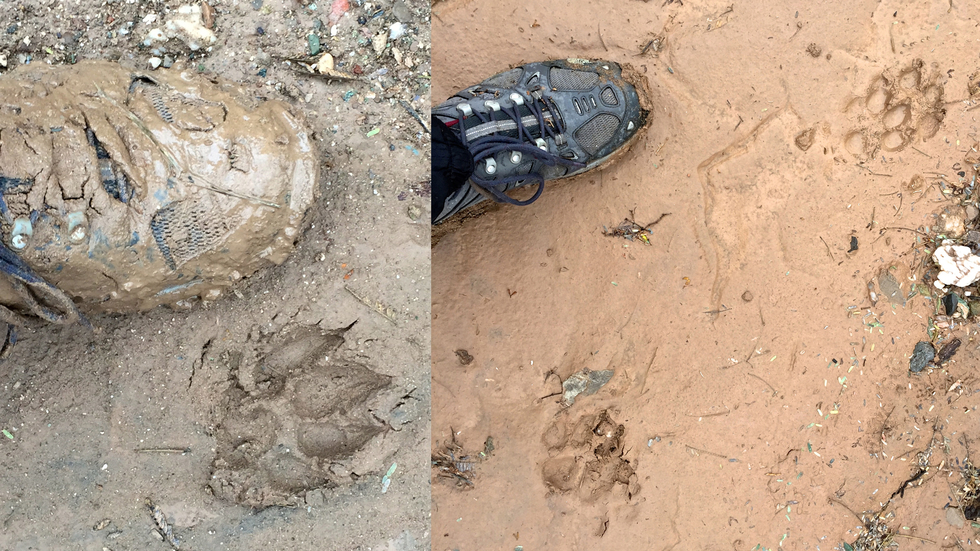 I saw several sets of prints from the very beginning. I wasn't sure what it was at the time, but I thought too small for a lion. Figured the claw marks on the left could still be a lion because of the soft mud. On the right side, I couldn't remember what species it is normal for the rear foot to step in the same print as the front foot did.