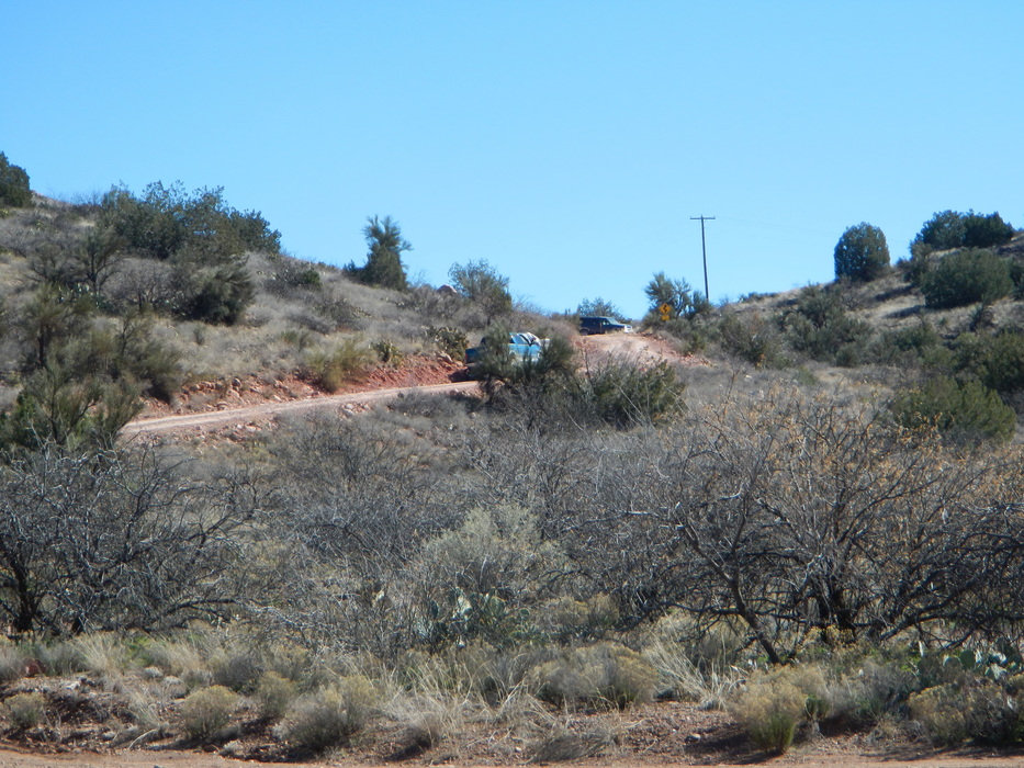 Here's the reason we were trapped at the trailhead. This poor kid was on his way from the trailhead when his left lower ballpoint broke in two! He then tried to back up, which caused his left front tire to wedge tightly into the front bumper. He was angled so that he was blocking the whole road...