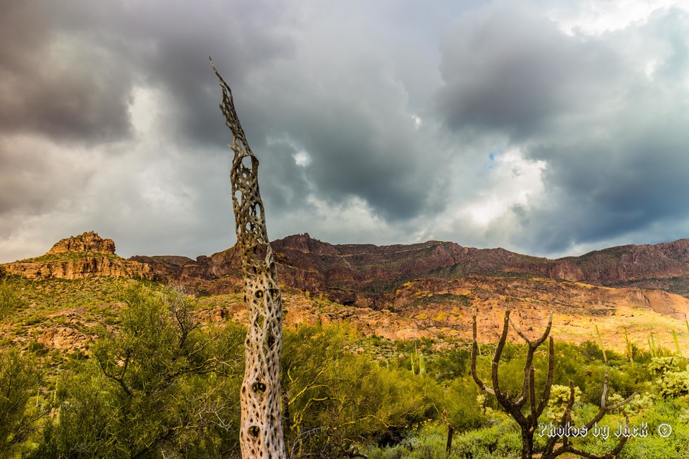 Portions of the Superstition Ridgeline are visible from the Lost Goldmine Trail.
