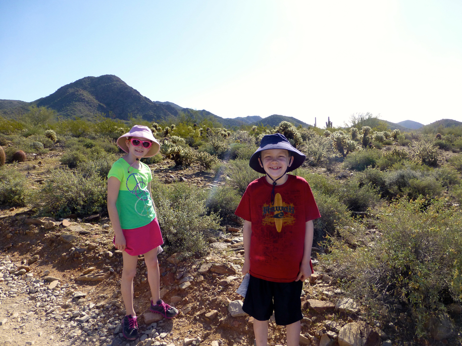 With maps in hand, Madelyn (9) and Adam (8) shared duties as "Hike-Master".