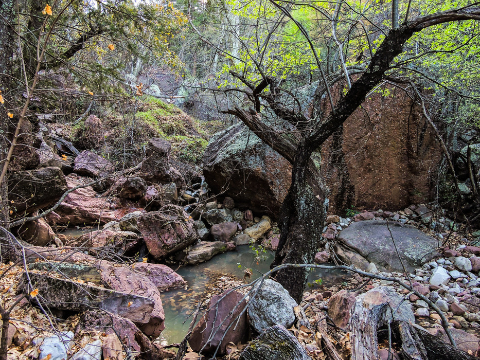 I was at the upper end of this canyon last year on a hike in to the base of Elephant Rock. Water in the creek bottom had this same milky color far upstream. I'm surprised that the water doesn't clear up as it filters its way down through all the rock and sand.